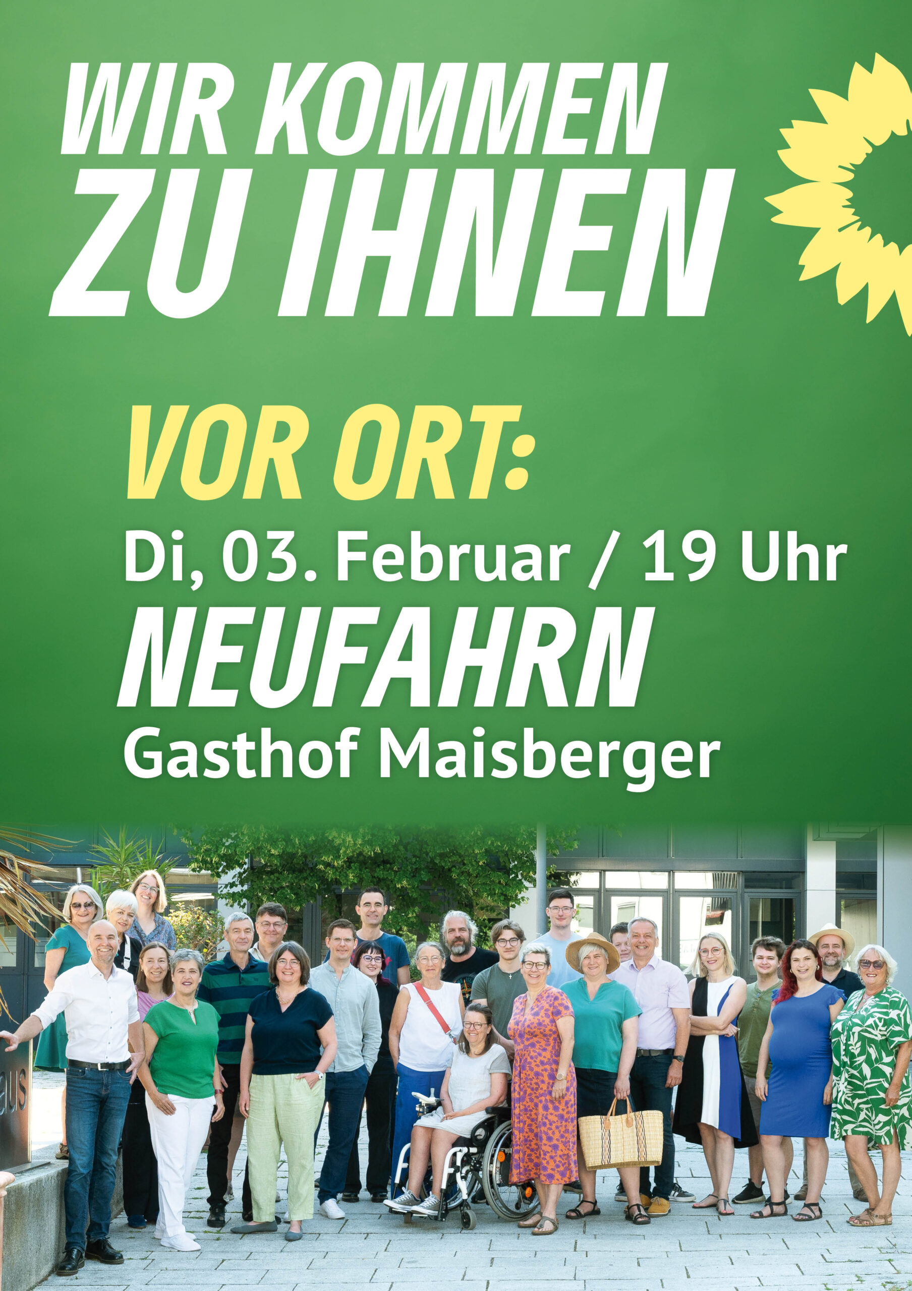 Am 3. Februar haben Sie die Gelegenheit, unsere Listenkandidatinnen und -kandidaten persönlich kennenzulernen – im Gasthof Maisberger in Neufahrn. Stellen Sie Ihre Fragen, kommen Sie ins Gespräch und erfahren Sie mehr über die Ideen und Ziele unseres kompetenten Teams.